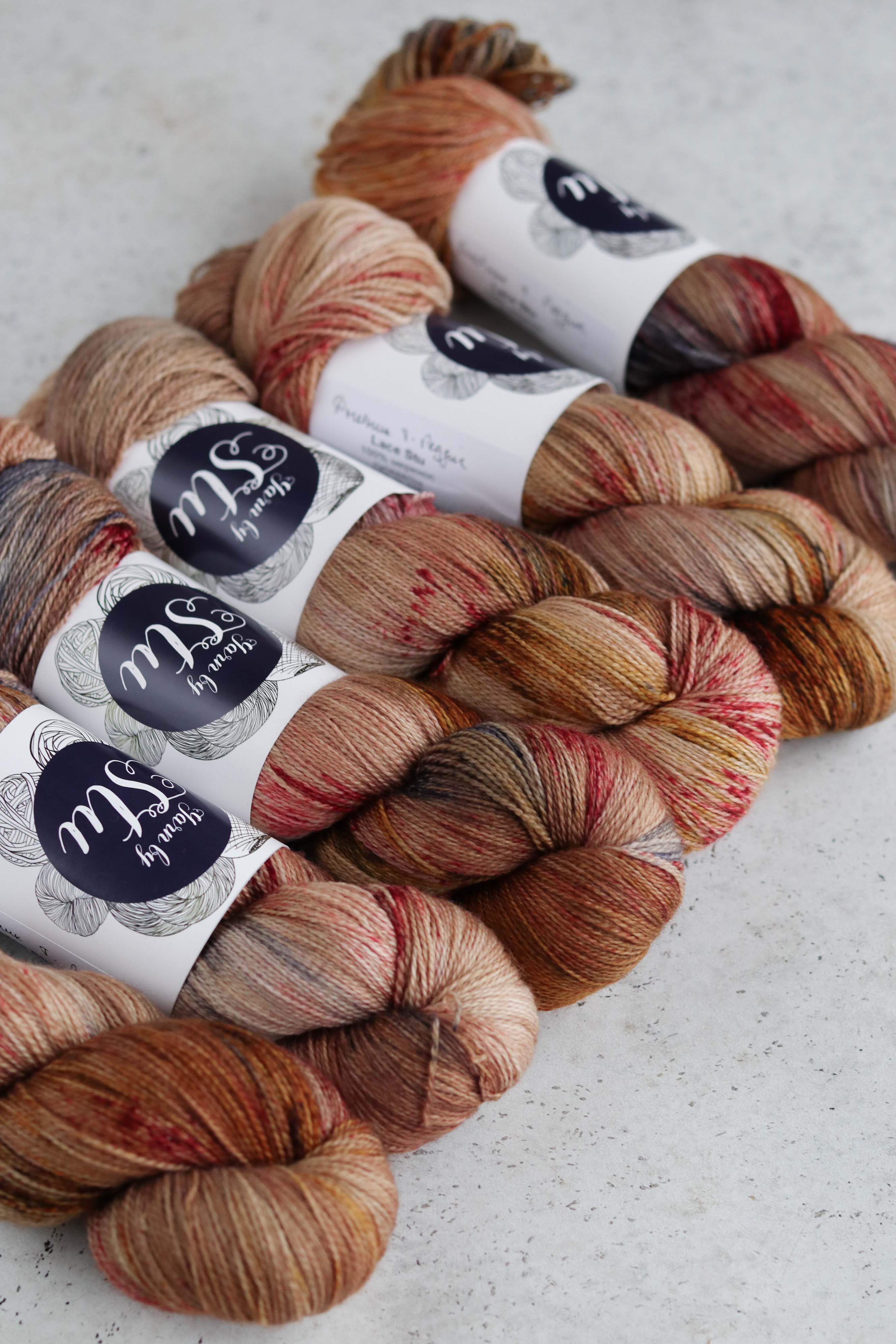 Вся пряжа окрашена вручную, поэтому двух идентичных пасм не бывает. В однотонных расцветках могут быть как светлые, так и темные участки. В секционных расцветках крапинки и секции варьируются от пасмы к пасме.