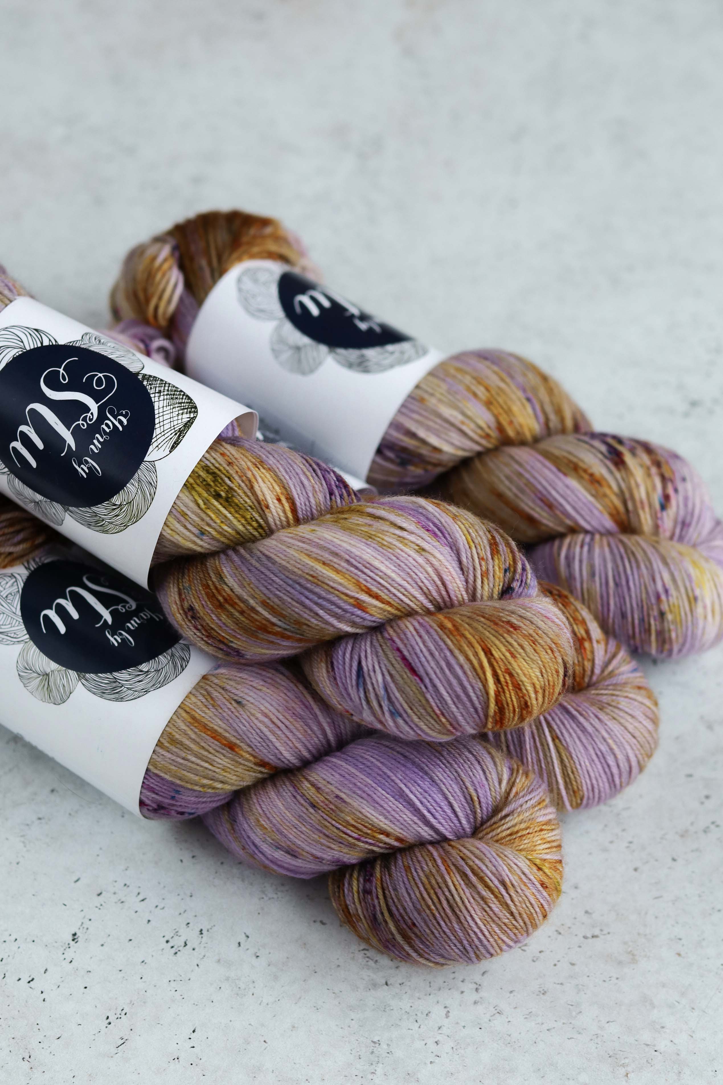 Вся пряжа окрашена вручную, поэтому двух идентичных пасм не бывает. В однотонных расцветках могут быть как светлые, так и темные участки. В секционных расцветках крапинки и секции варьируются от пасмы к пасме.