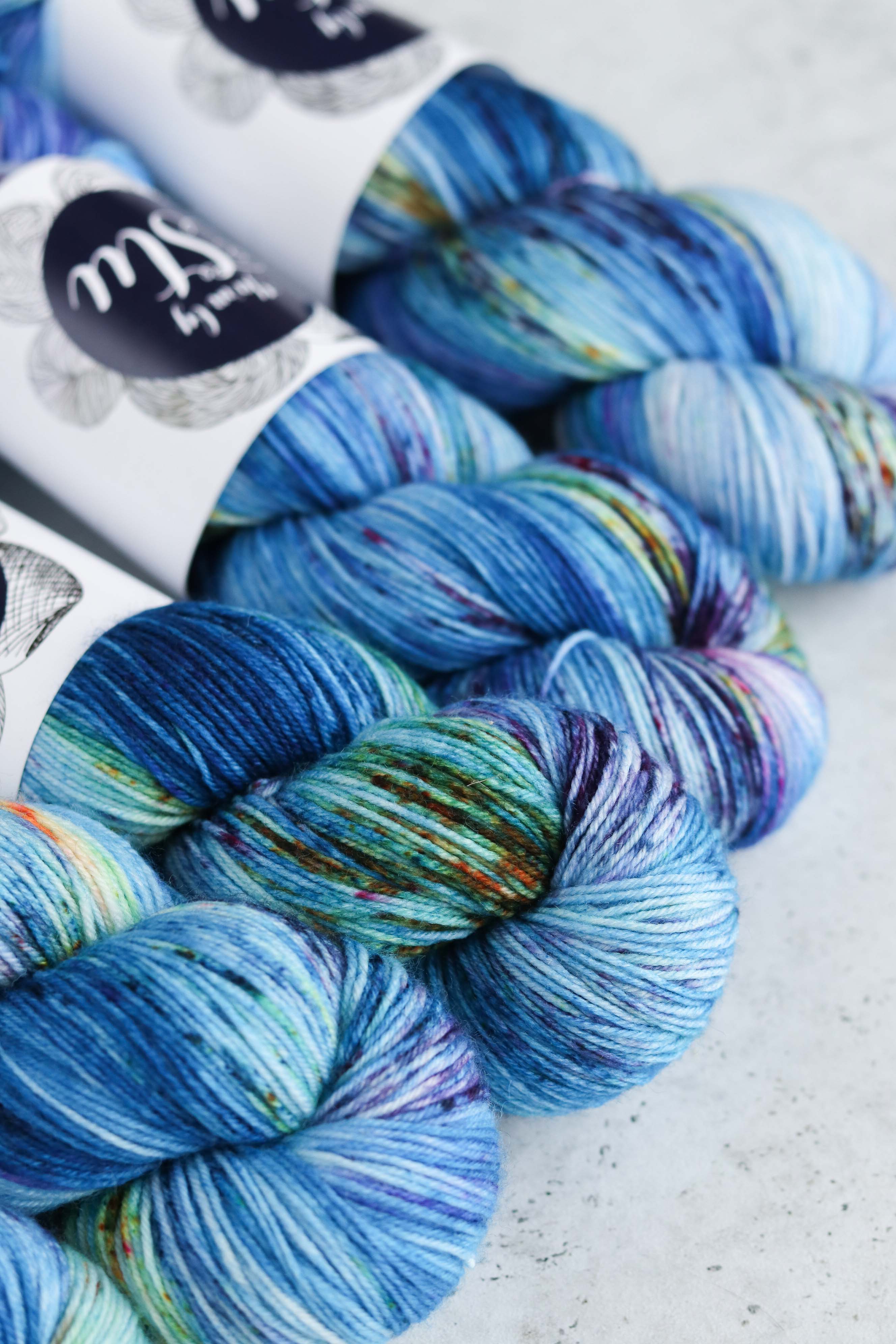 Вся пряжа окрашена вручную, поэтому двух идентичных пасм не бывает. В однотонных расцветках могут быть как светлые, так и темные участки. В секционных расцветках крапинки и секции варьируются от пасмы к пасме.